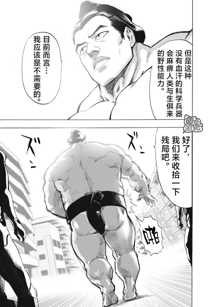 本话开始出现的第一个NEO英雄协会的干部是一个名叫雷电的相扑横纲,这家伙的实力还是很不错的,是单凭肉身就能碾碎怪人的狠人。