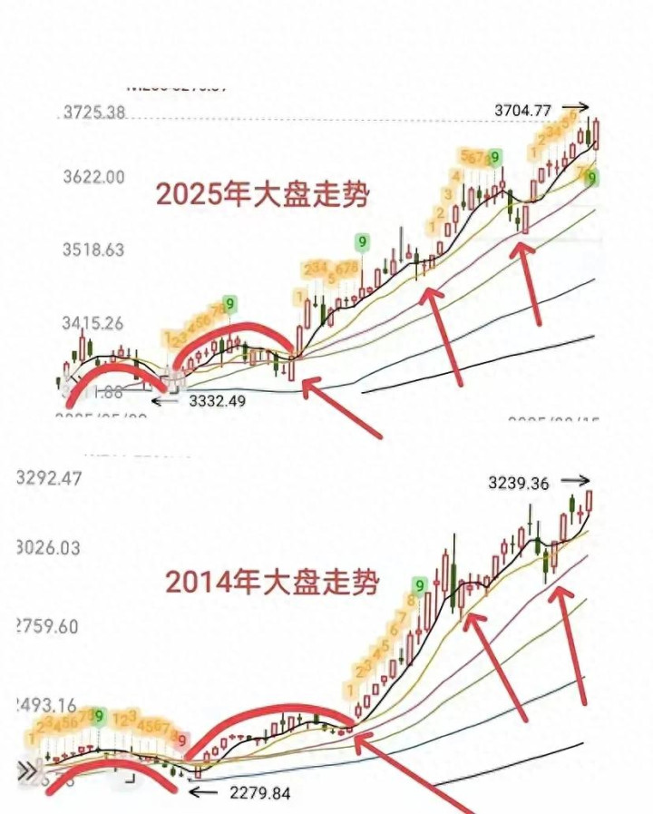 沪指当前的牛市,和2014年的牛市有着惊人的相似之处。就好像时间按下了重播键,市场上又出现了熟悉的热闹景象,各种利好消息频出,投资者们的热情也被重新点燃,仿佛又回到了那段激情燃烧的岁月。